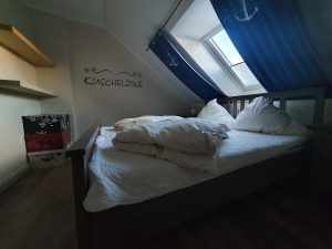Das Schlafzimmer ist ausgestattet mit 160 x 200cm großem Doppelbett.